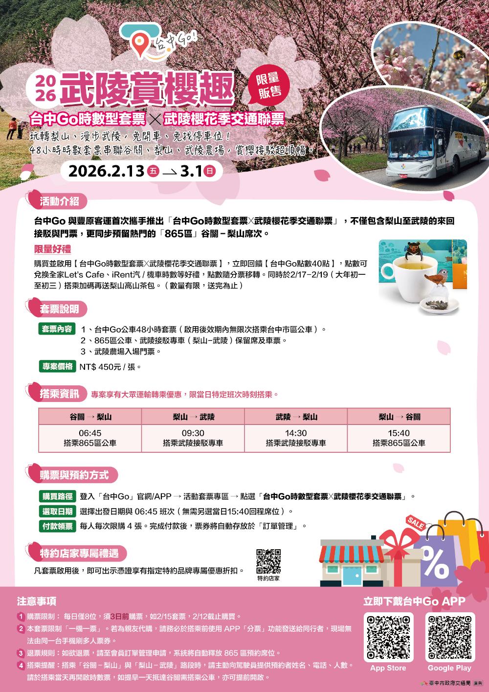 台中 Go 時數型套票 × 武陵櫻花季交通聯票