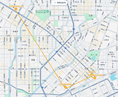 下午 | 采・寓 halo house Check-in | 厝秘(甘肅店)→步行→文心甘肅路口公車站(搭乘33路,往文修停車場)→教師新村路口站下車→步行→采・寓 halo house | 設計感住宿 |